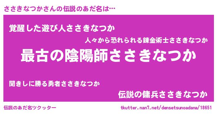 | ヒーロー風カッコイイあだ名 | 『ウルトラささきなつかマン』 |