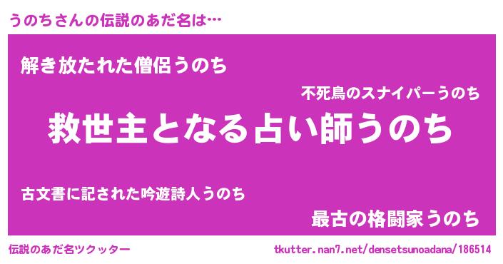 | 意味不明あだ名 | 『眠気覚ましガムうのち味』『自称うのち』 |