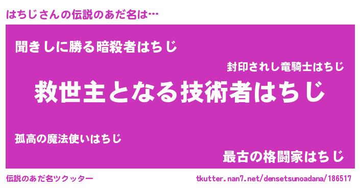 | ヒーロー風カッコイイあだ名 | 『天空の使者はちじ』『仮面ハチダー』 |