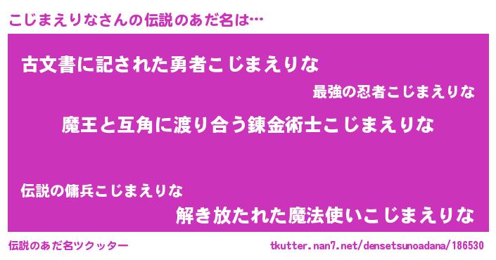 | 胡散臭い通販商品みたいなあだ名 | 『お金では代えられない隕石のかけら…その名も「こじまえりな」』 |