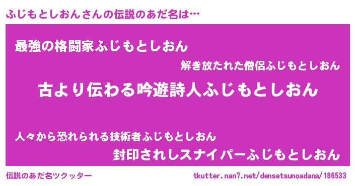 | 意味不明あだ名 | 『住所不定無職ふじもとしおん(10歳)』 |