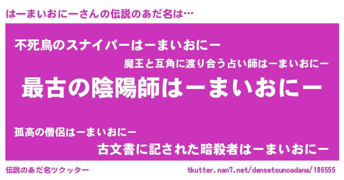 | 欧米人風あだ名 | 『はーまいおにークリステル』 |