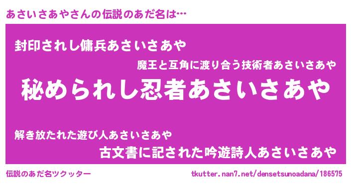 | 男性向けラノベタイトル風あだ名 | 『やはりあさいさあやの青春ラブコメはまちがっている 』 |