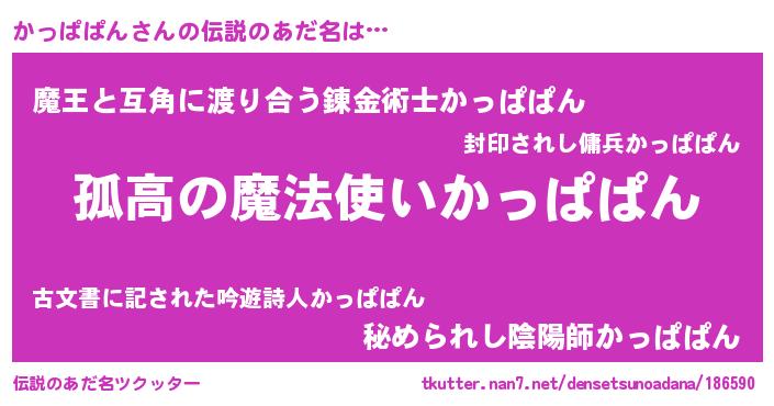 | 意味不明あだ名 | 『住所不定無職かっぱぱん(11歳)』 |