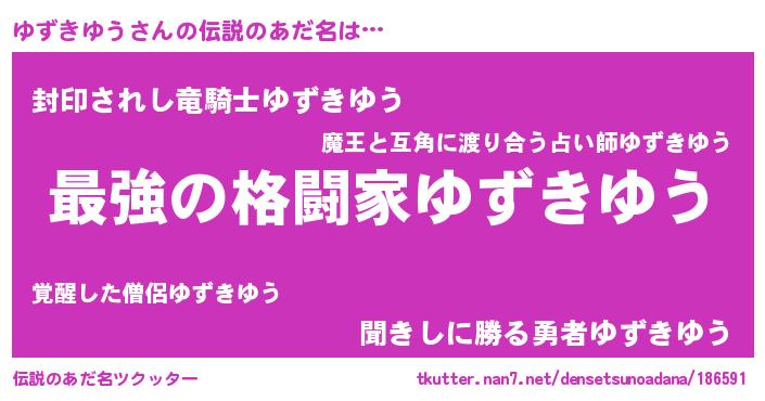 | 男性向けラノベタイトル風あだ名 | 『うちのゆずきゆうが世界を掌握している!』 |