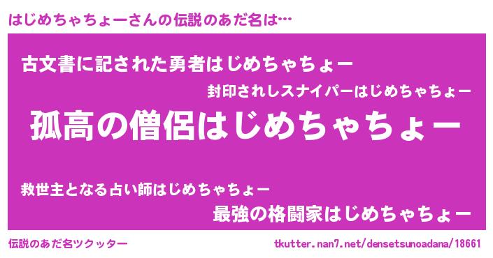 | 意味不明あだ名 | 『自称はじめちゃちょー』 |