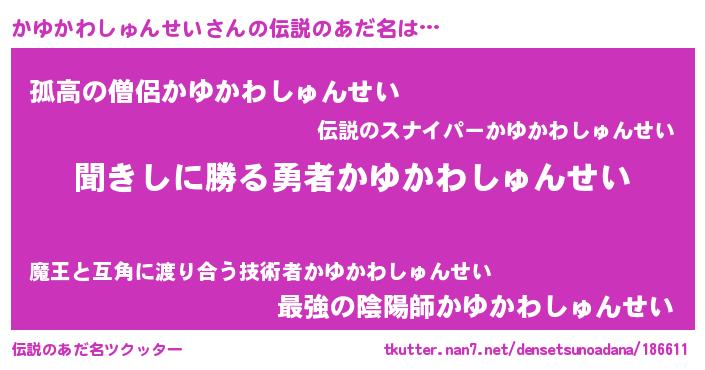 | 男性向けラノベタイトル風あだ名 | 『かゆかわしゅんせいという概念が存在しない退屈な世界 』 |