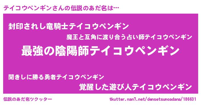| ファンタジー風あだ名 | 『エターナルテイコウペンギンー』 |