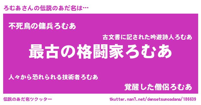 | 意味不明あだ名 | 『ろむあフォーエバー』『ペロリンろむあ』 |