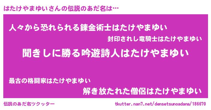 | 意味不明あだ名 | 『永久保存はたけやまゆい』 |