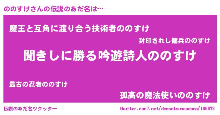 | 男性向けラノベタイトル風あだ名 | 『ののすけという概念が存在しない退屈な世界 』 |