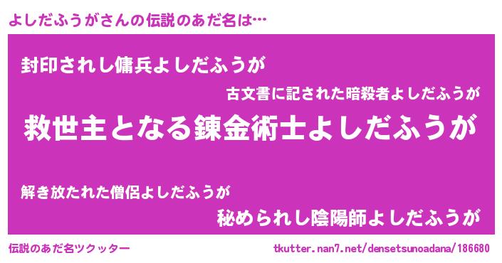 | ヒーロー風カッコイイあだ名 | 『天空の使者よしだふうが』 |