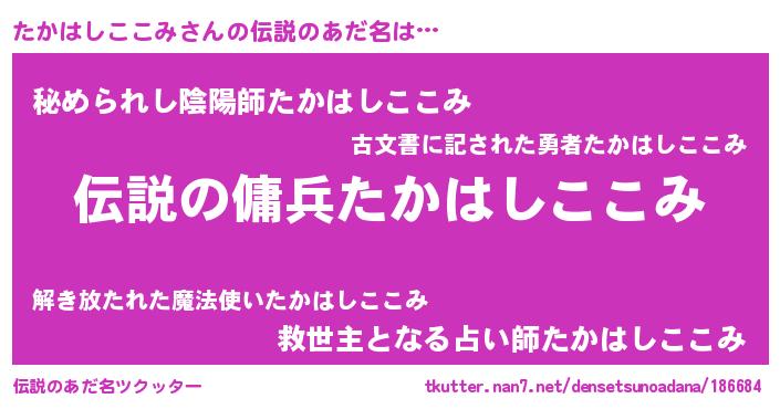 | ヒーロー風カッコイイあだ名 | 『スーパータカハシココミ』 |