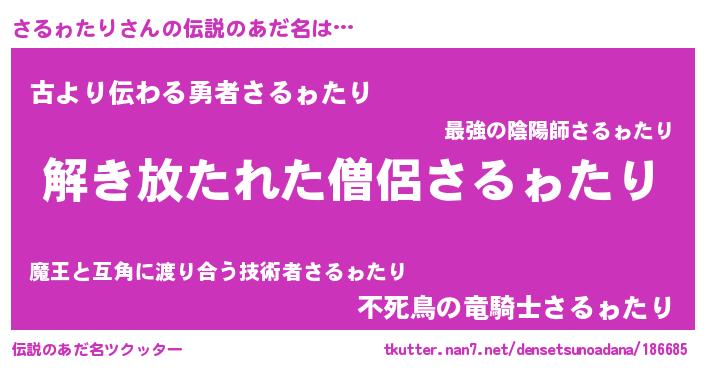 | 男性向けラノベタイトル風あだ名 | 『Re:さるゎたりから始める異世界生活』 |