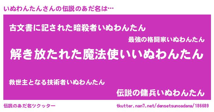 | 胡散臭い通販商品みたいなあだ名 | 『世界中を虜にした100年もののヴィンテージワイン…その名も「いぬわんたん」』 |