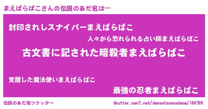 | 意味不明あだ名 | 『永久保存まえばらばこ』 |