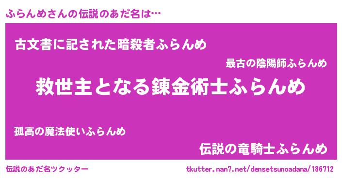 | ヘコむあだ名 | 『ふらんめ(苦笑)』『ふらにゅー』 |