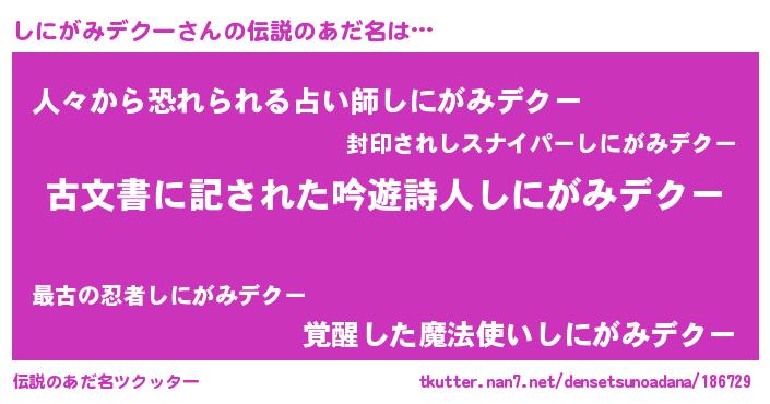 | 意味不明あだ名 | 『永久保存しにがみデクー』 |