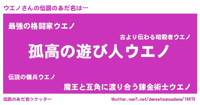 | 意味不明あだ名 | 『自称ウエノ』『とにかく怪しいウエノ』 |