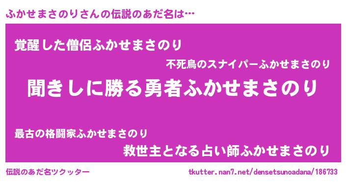 | ヘコむあだ名 | 『ふかせまさのり(震え声)』『ふかっ子』 |