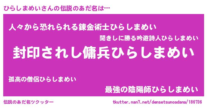 | 胡散臭い通販商品みたいなあだ名 | 『億万長者になれる水晶球…その名も「ひらしまめい」』 |