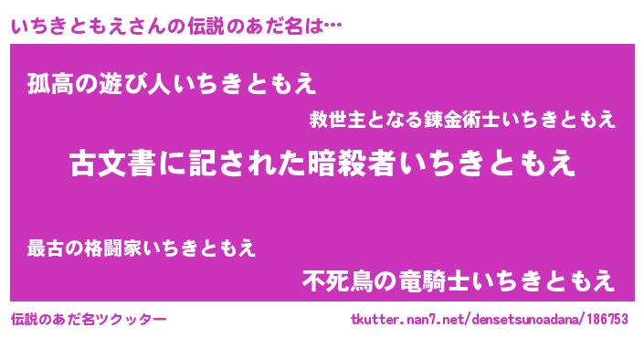 | ヘコむあだ名 | 『いちきともえ(爆)』『いちっぺ』 |