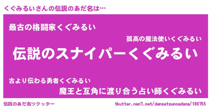 | ヒーロー風カッコイイあだ名 | 『スーパークグミルイ』『幻影騎士クグ』 |
