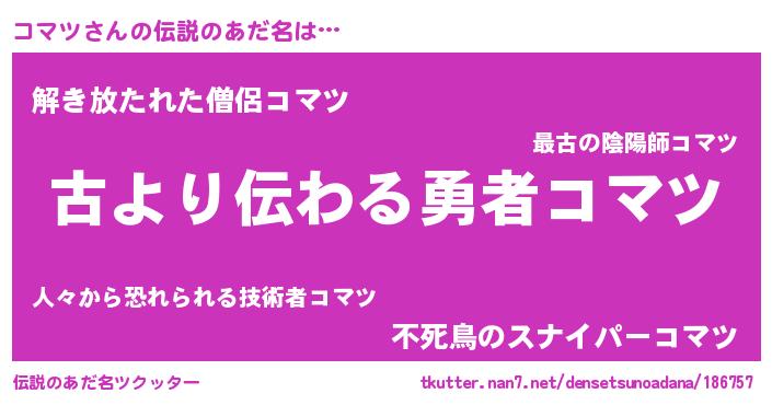 | ヒーロー風カッコイイあだ名 | 『ネオコマツ』『幻影騎士コマ』 |