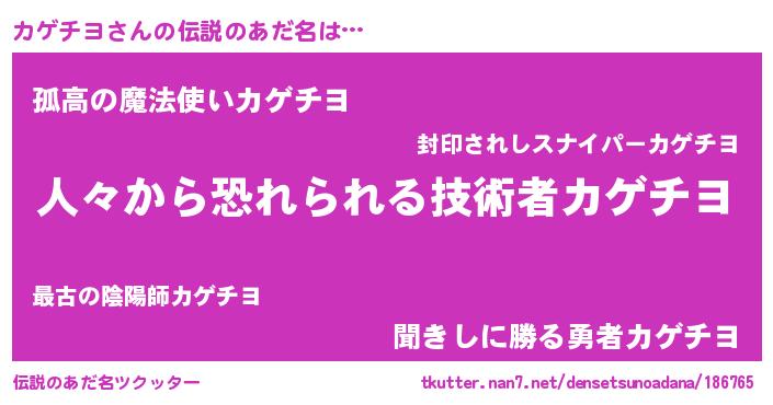| ヘコむあだ名 | 『カゲお』『カゲチヨ(小並感)』 |