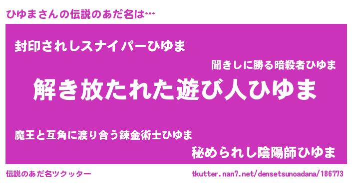 | ヒーロー風カッコイイあだ名 | 『幻影騎士ヒユ』『仮面ヒユダー』 |