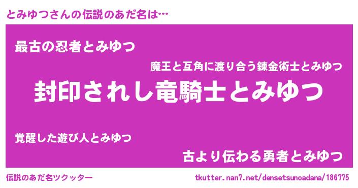 | ヒーロー風カッコイイあだ名 | 『スーパートミユツ』『ネオトミユツ』 |