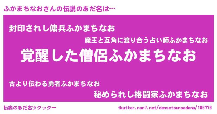 | 男性向けラノベタイトル風あだ名 | 『ふかまちなおの嫁は女の子じゃないと思った?』 |