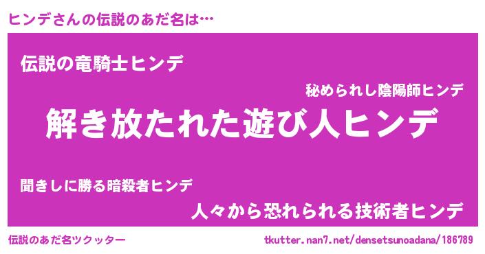 | 意味不明あだ名 | 『とにかく怪しいヒンデ』 |