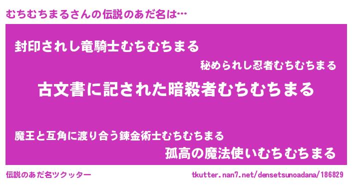| ヘコむあだ名 | 『むちむちまる(爆)』『むちにー』 |