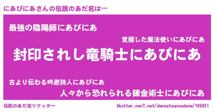 | 意味不明あだ名 | 『ペロリンにあぴにあ』『自称にあぴにあ』 |