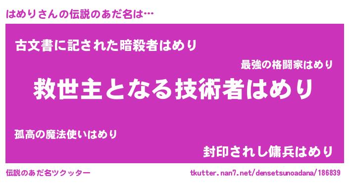 | ヘコむあだ名 | 『はめり(笑)』『はめにー』『豆乳』 |