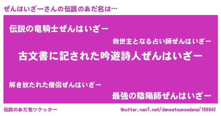 | 肩書あだ名 | 『ぜんはいざー船長』『ぜんはいざー閣下』 |