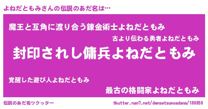 | 意味不明あだ名 | 『自称よねだともみ』 |