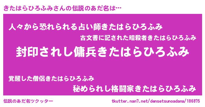 | 女子向けラノベタイトル風あだ名 | 『闇のきたはらひろふみ』 |
