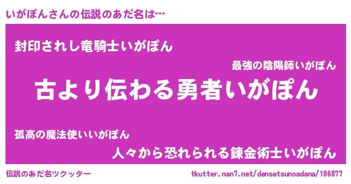 | ヒーロー風カッコイイあだ名 | 『ネオイガポン』『仮面イガダー』 |
