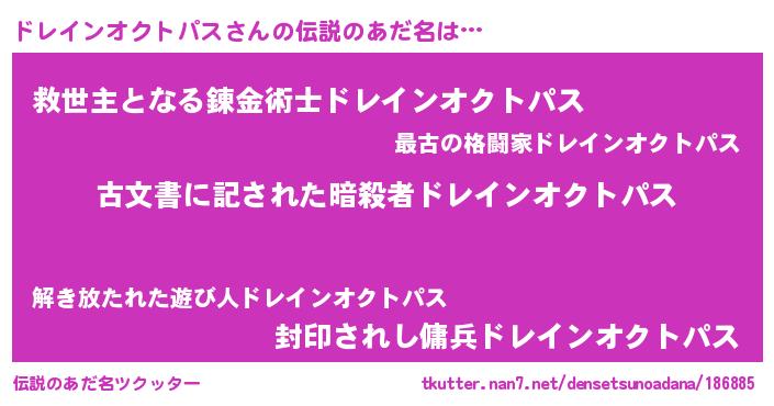 | 胡散臭い通販商品みたいなあだ名 | 『前代未聞の健康食品…その名も「ドレインオクトパス」』 |