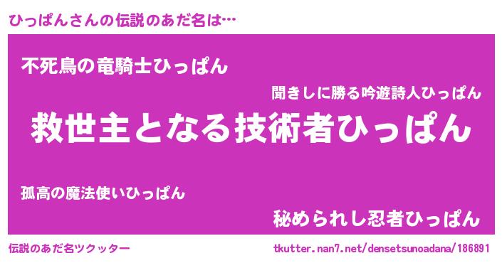 | ヒーロー風カッコイイあだ名 | 『天空の使者ひっぱん』『仮面ヒッダー』 |