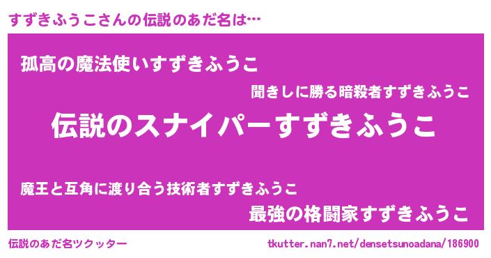 | 男性向けラノベタイトル風あだ名 | 『スズキフウコスレイヤー』 |