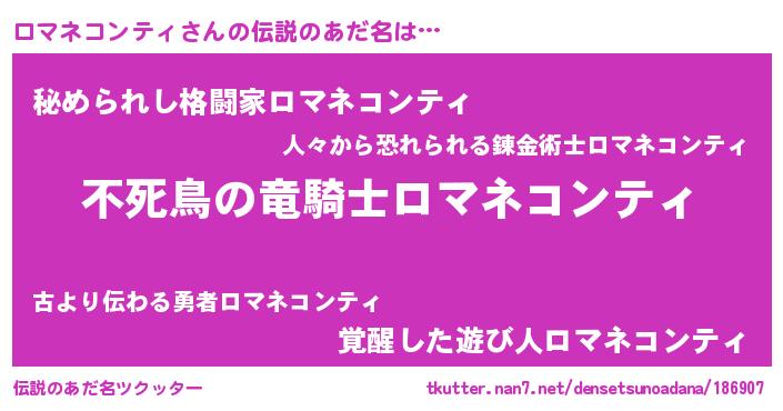 | 男性向けラノベタイトル風あだ名 | 『ロマネコンティアートオンライン』 |