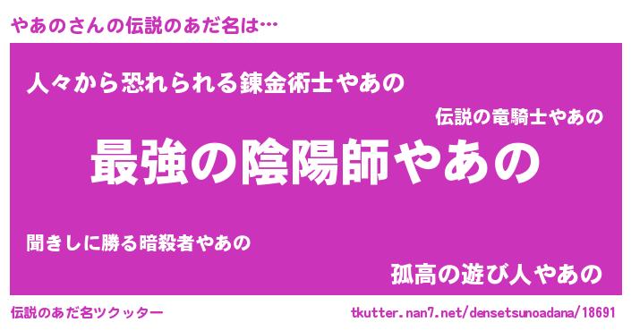 | ファンタジー風あだ名 | 『ヴァルヤアーナ』『エターナルヤアノー』 |
