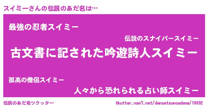 | ヒーロー風カッコイイあだ名 | 『ネオスイミー』『ウルトラスイミーマン』 |