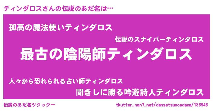 | 意味不明あだ名 | 『ティンダロスフォーエバー』 |
