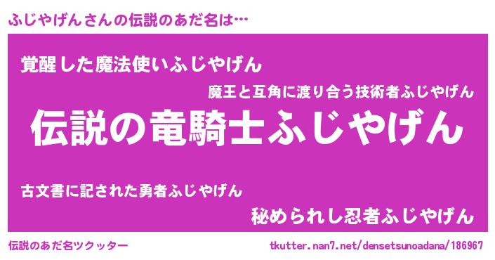 | ヒーロー風カッコイイあだ名 | 『スーパーフジヤゲン』『暗黒騎士フジ』 |