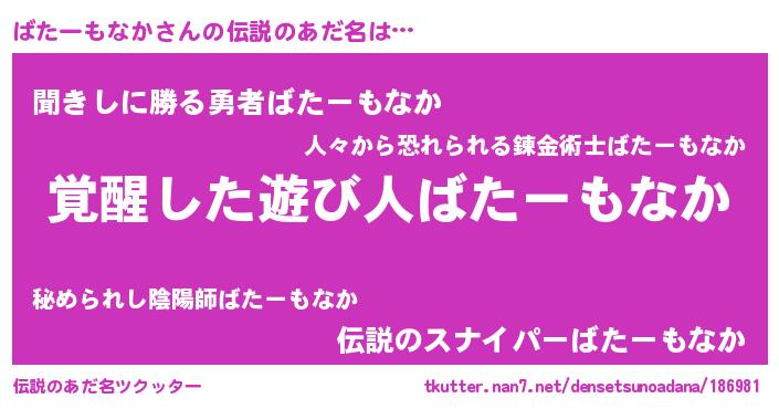 | ヘコむあだ名 | 『ばたっちょ』『ばたーもなか(遠い目)』 |