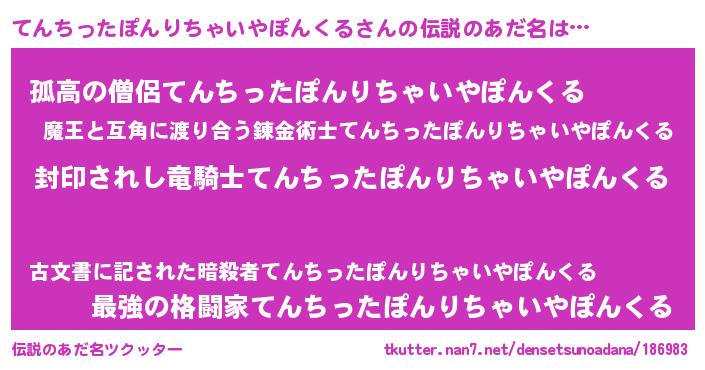 | ヒーロー風カッコイイあだ名 | 『スーパーテンチッタポンリチャイヤポンクル』 |